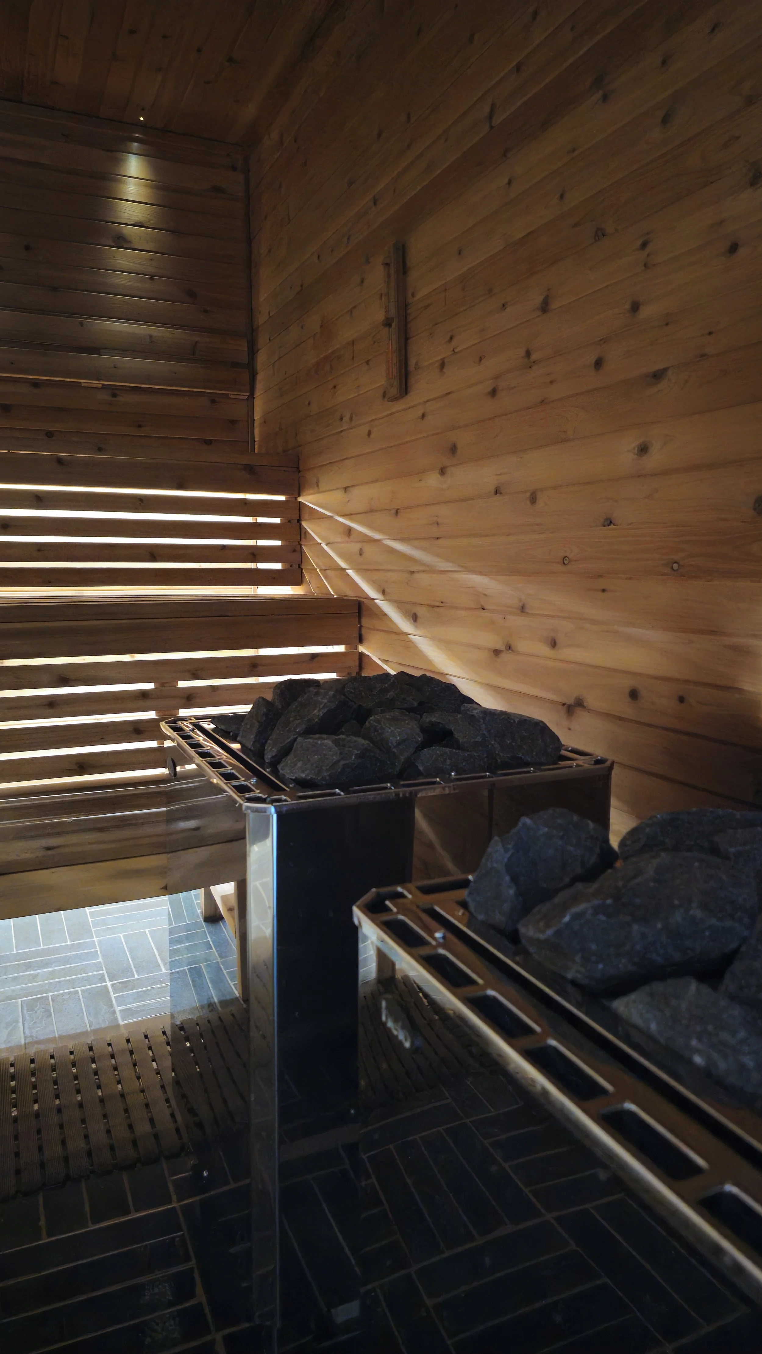 A new layer to the ritual. We use pure essential oils and infuse them in water and ice to place on the sauna rocks, releasing gentle bursts of aroma to deepen your breath and reset your senses.